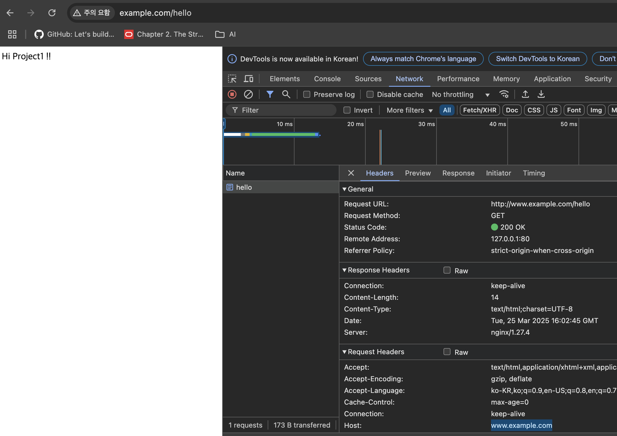 http://www.example.com/hello와http://www.example.net/hello에 접속- 각각 메시지가 표시되는지 확인